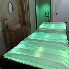 su questo lettino ad acqua calda viene eseguito un massaggio rilassante e distensivo di galleggiamento con manualità fluide e avvolgenti da testa a piedi
